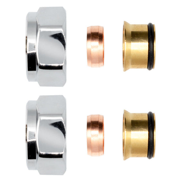 2 x Klemmringverschraubung Messing Chrom 3/4" für Kupferrohre Eurokonus 15mm
