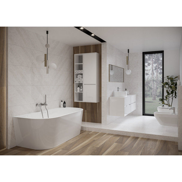 Halb-Freistehende Badewanne 170x80x60 Mittig Rundeck Acryl Weiß
