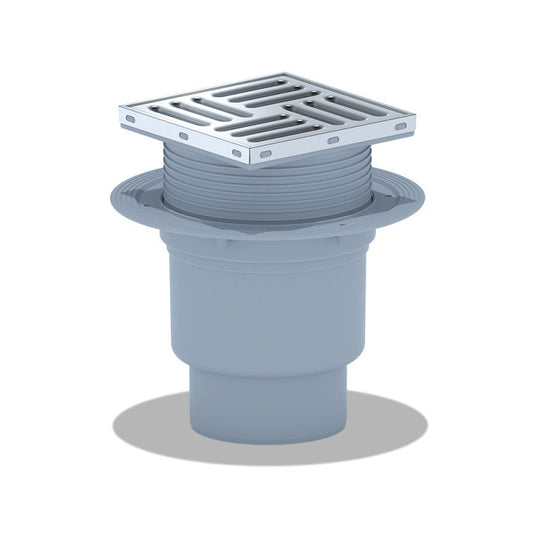 Bodenablauf Edelstahl Durchgang 150x150 mm höhenverstellbar 155-188 mm DN