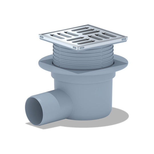 Bodenablauf Edelstahl Eck 100x100 mm höhenverstellbar 106-131 mm DN50
