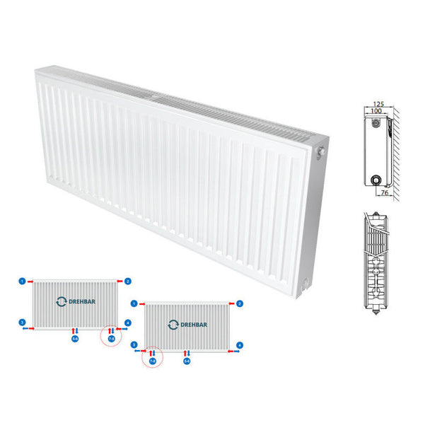 Typ 22 Universalheizkörper Ventilheizk Mittelanschluss mit 8 Anschlüsse 300x1200