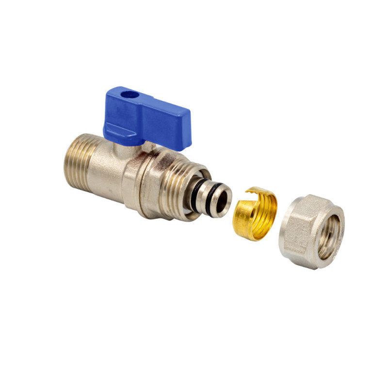 Geschäftsinfo anzeigenKugelhahn mit Klemmring 1/2" AG 16 x 2 Blau